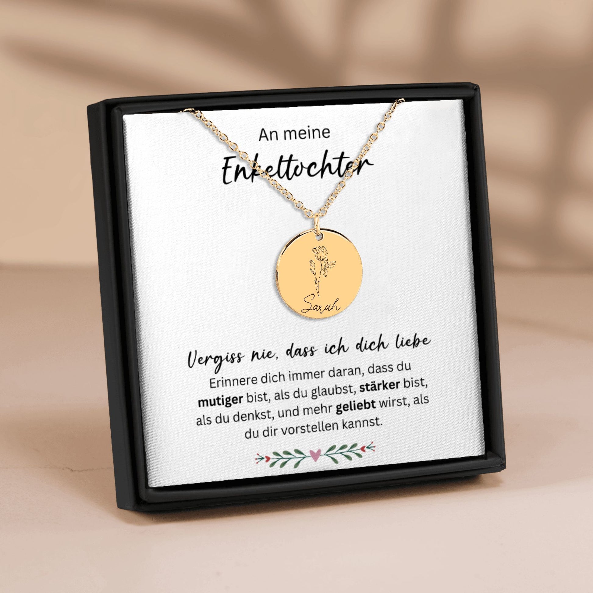 An Meine Enkeltochter - Vergiss Nie, Dass Ich Dich Liebe - Personalisierte Geburtsblumen Namenskette
