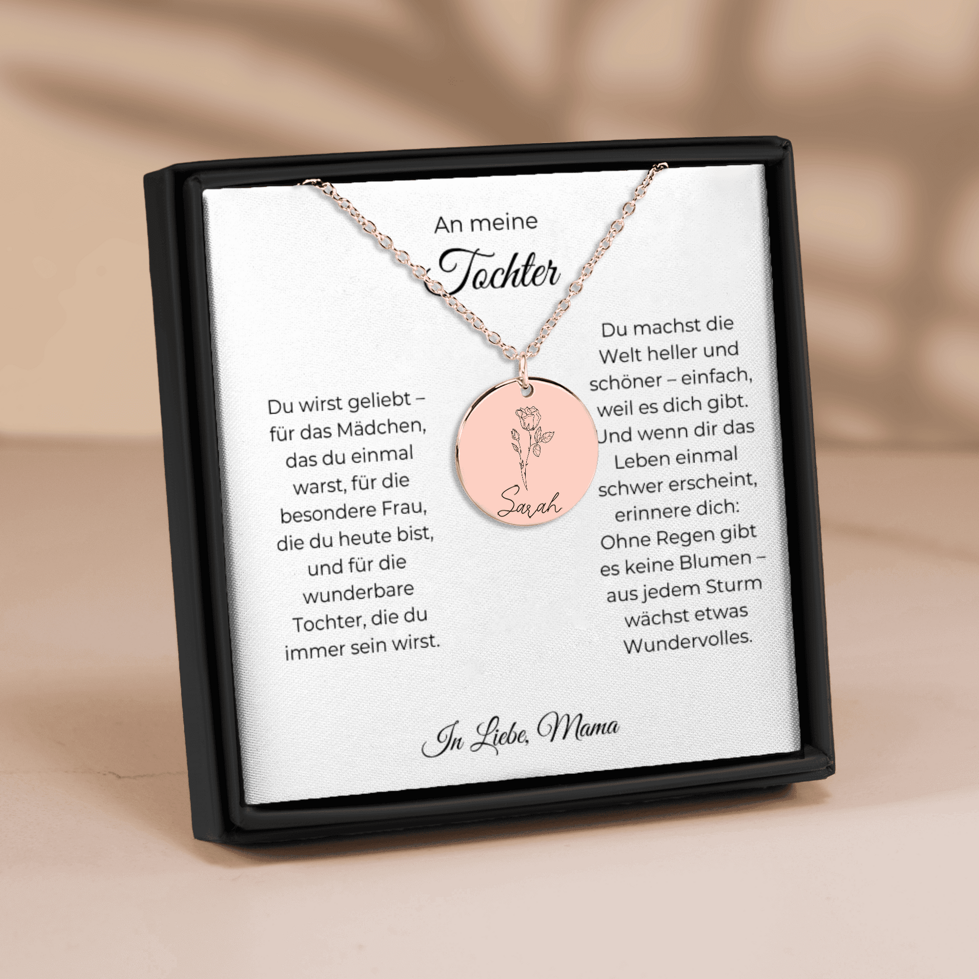An Meine Tochter | Du Machst Die Welt Heller Und Schöner | Personalisierte Geburtsblumen Namenskette
