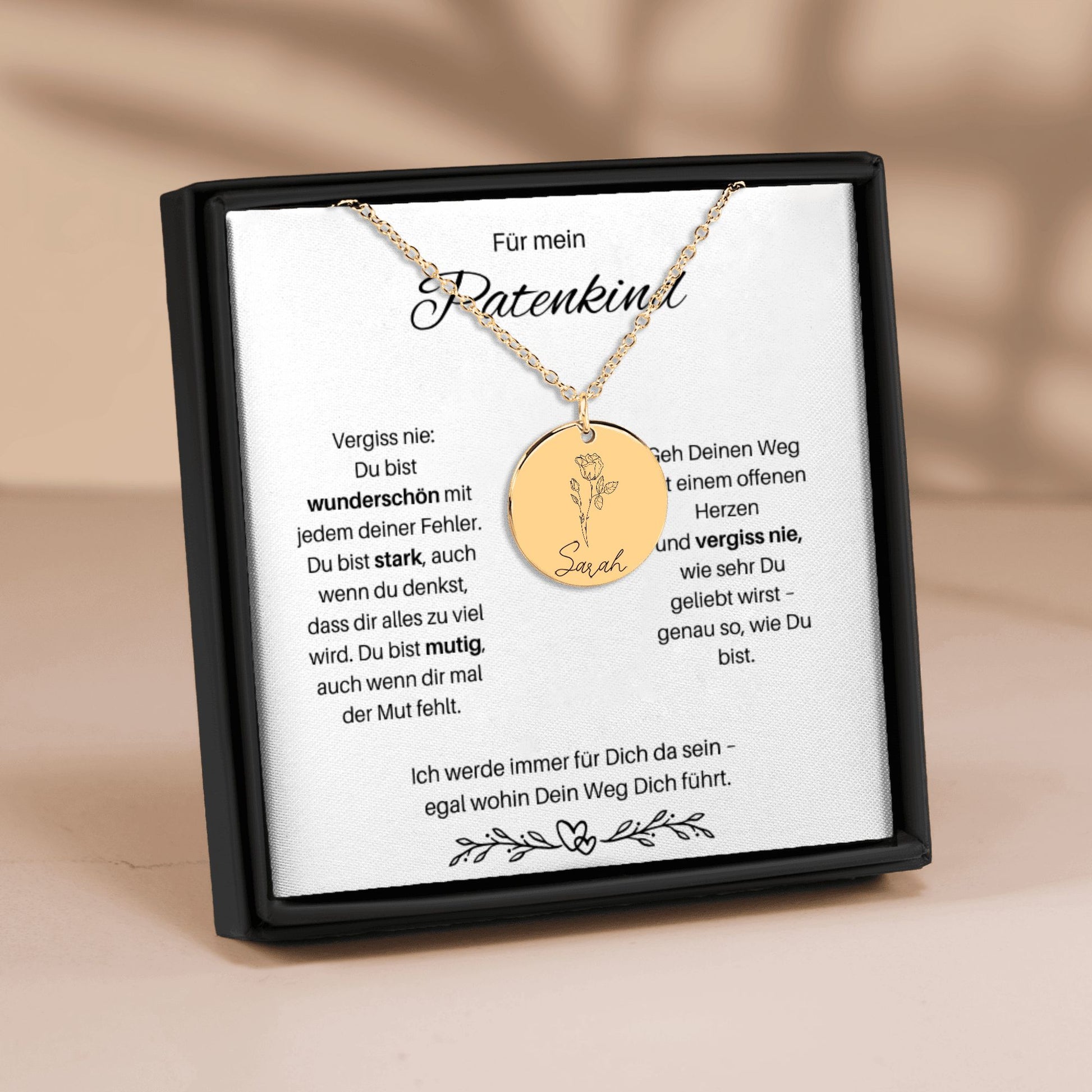 Für Mein Patenkind | Du Bist Wunderschön Mit jedem Deiner Fehler | Personalisierte Geburtsblumen Namenskette