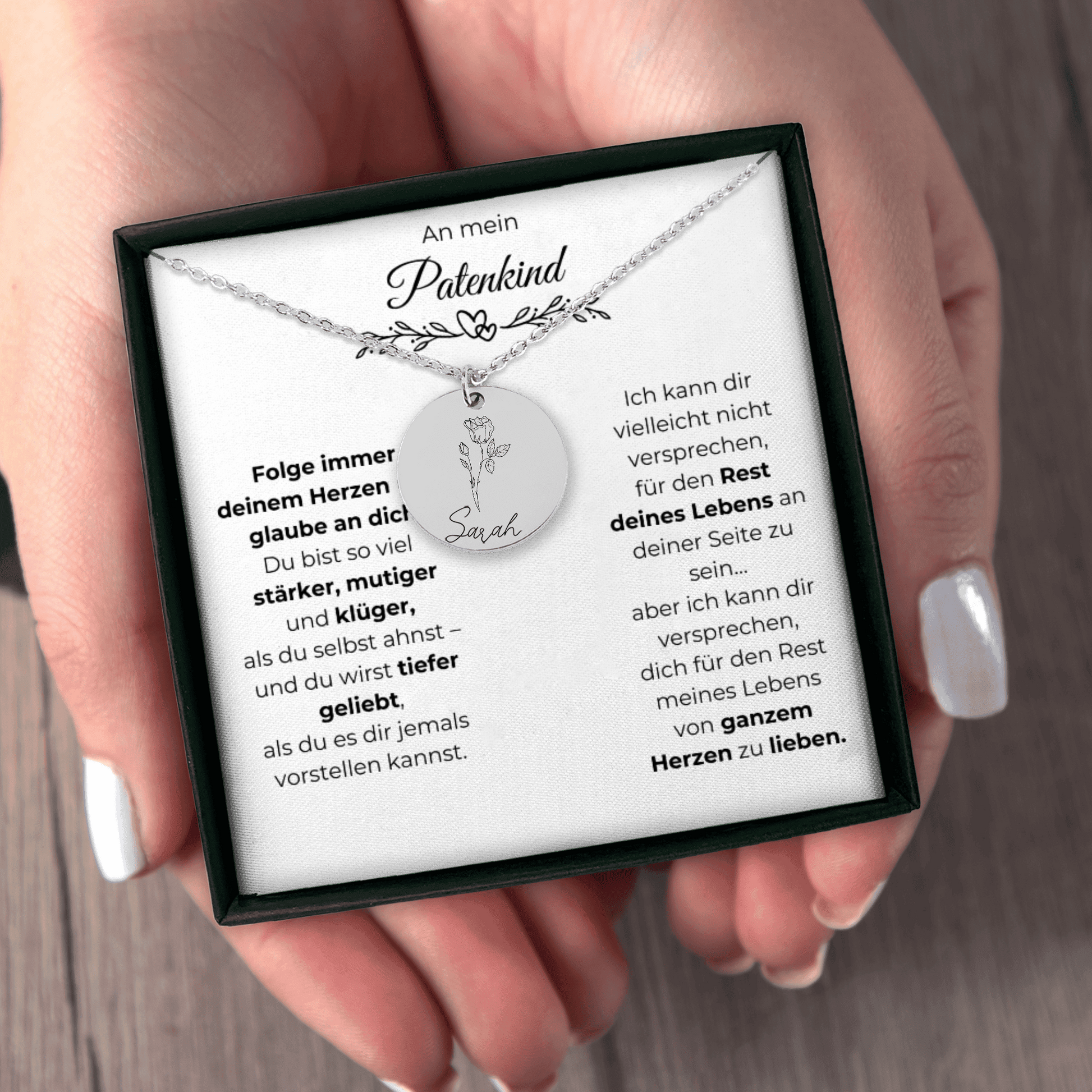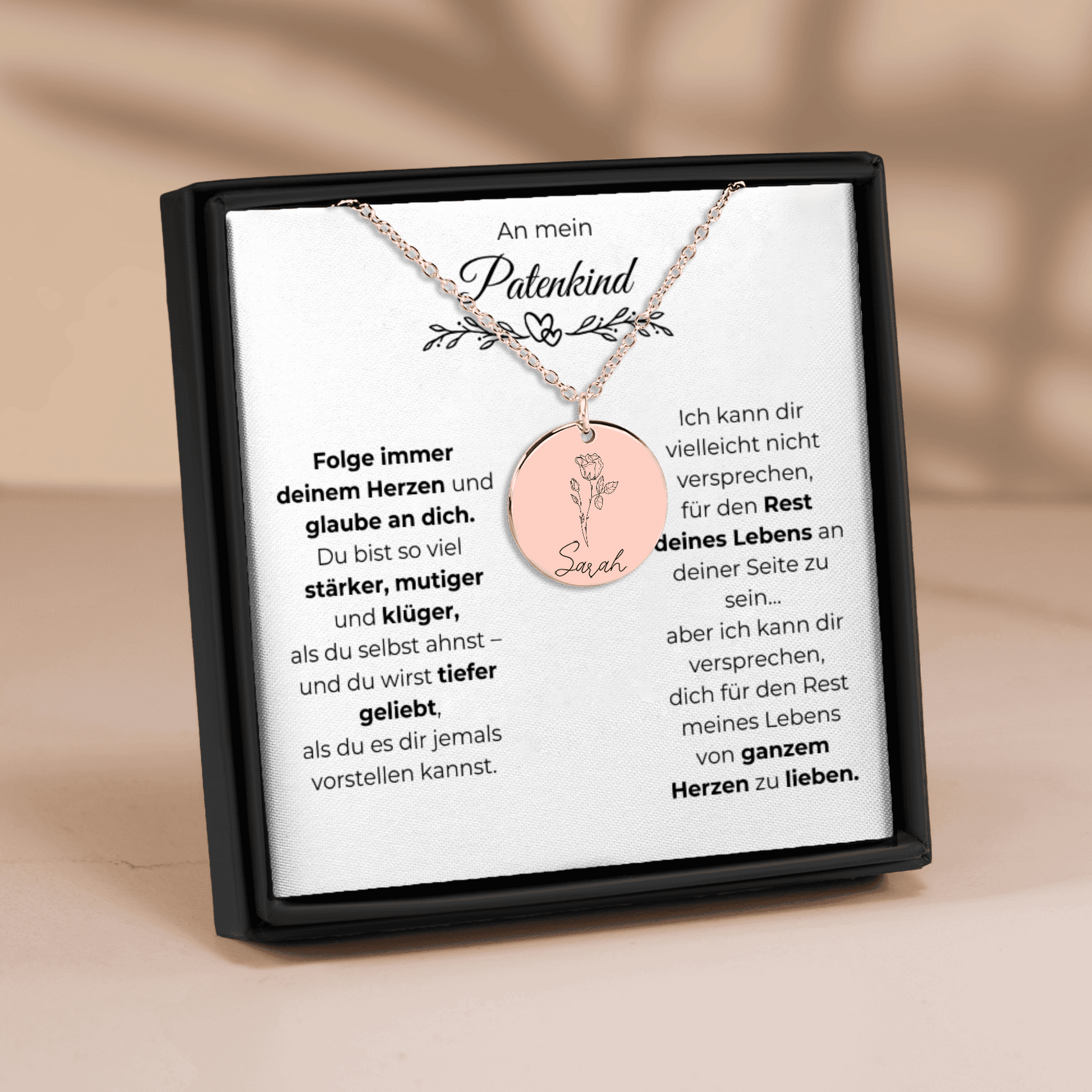 An Mein Patenkind | Folge Immer Deinem Herzen| Personalisierte Geburtsblumen Namenskette