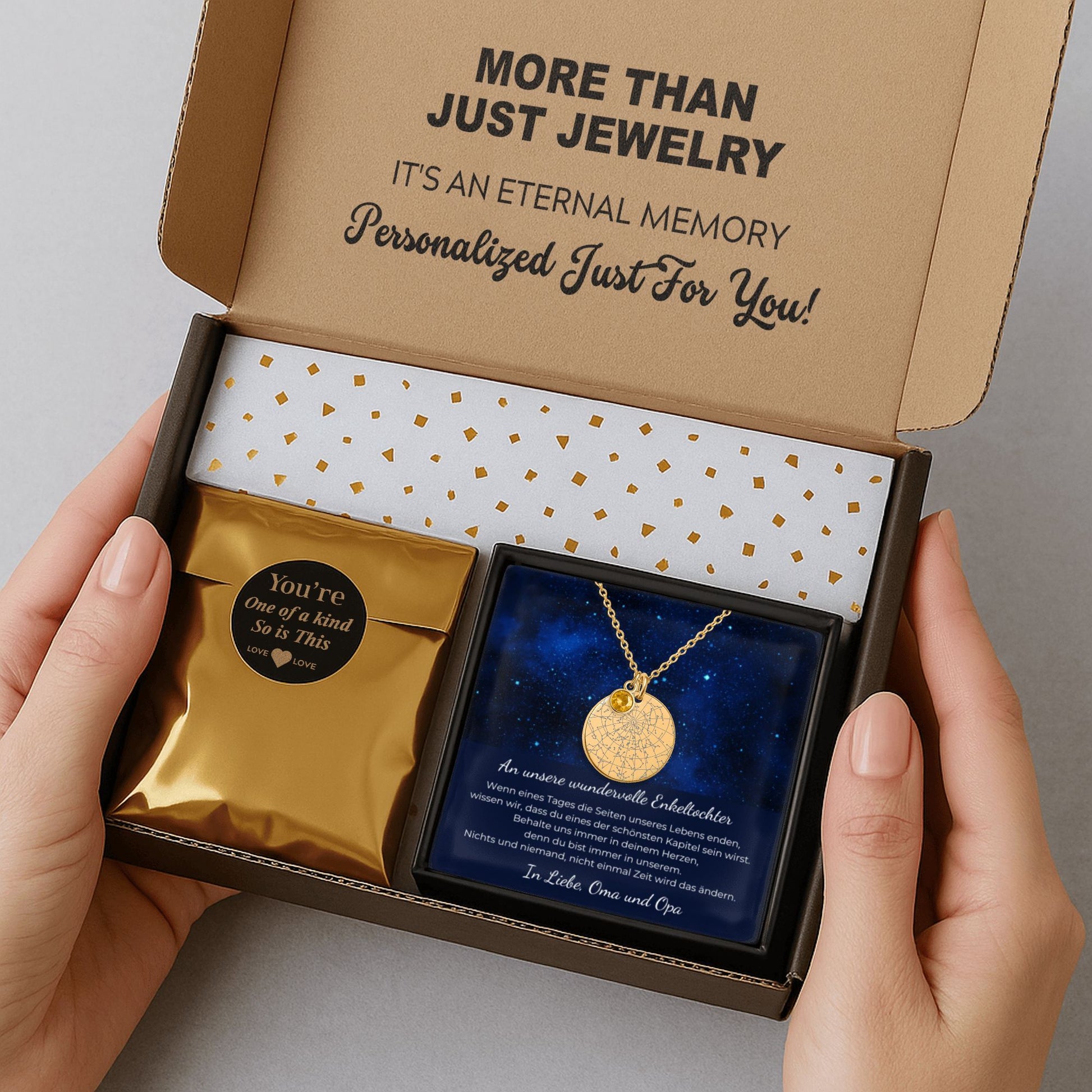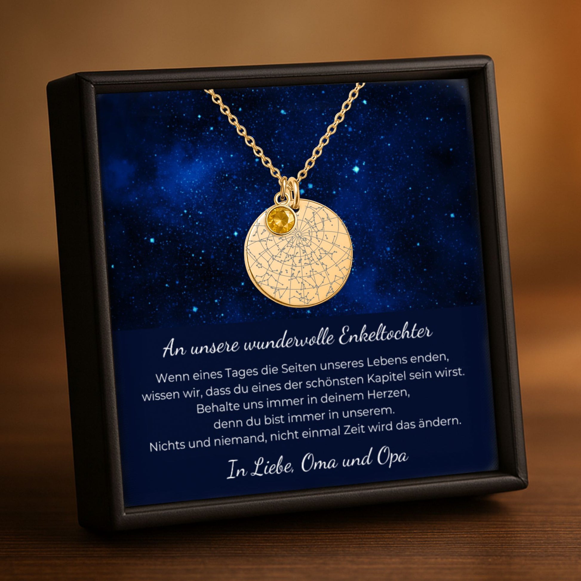 An Unsere Wundervolle Enkeltochter | Behalte Uns Immer In Deinem Herzen | Personalisierte Sternenkarte-Kette mit Geburtsstein